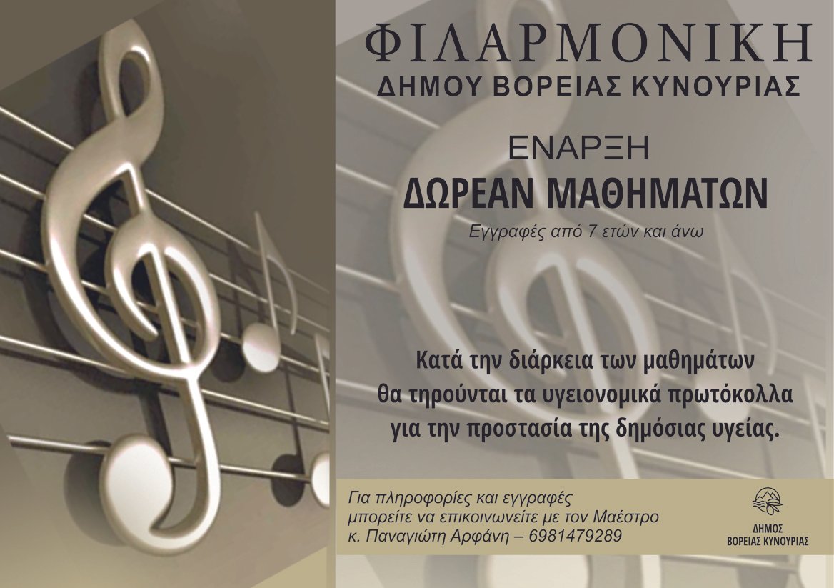δωρεάν μαθήματα της Φιλαρμονικής του Δήμου μας. Καλούμε όλους τους