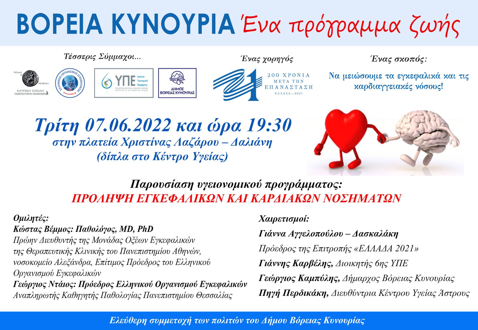 πρόγραμμα ζωής», η οποία θα γίνει την Τρίτη 7 Ιουνίου 2022 και ώρα 19:30, στην πλατεία