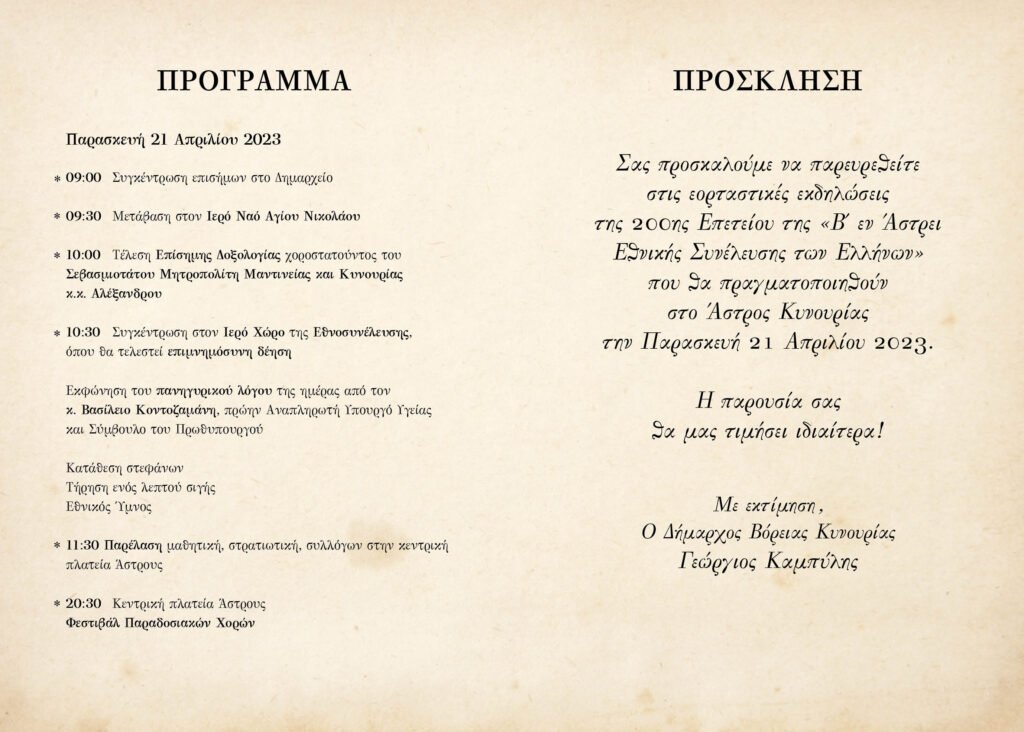 Εθνοσυνέλευσης των Ελλήνων στο Άστρος, ο Δήμος Βόρειας Κυνουρίας έχει