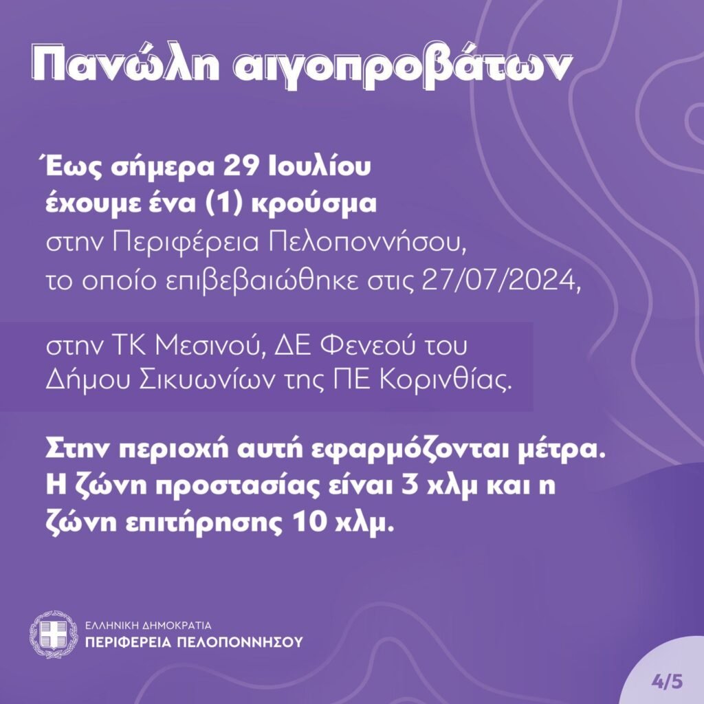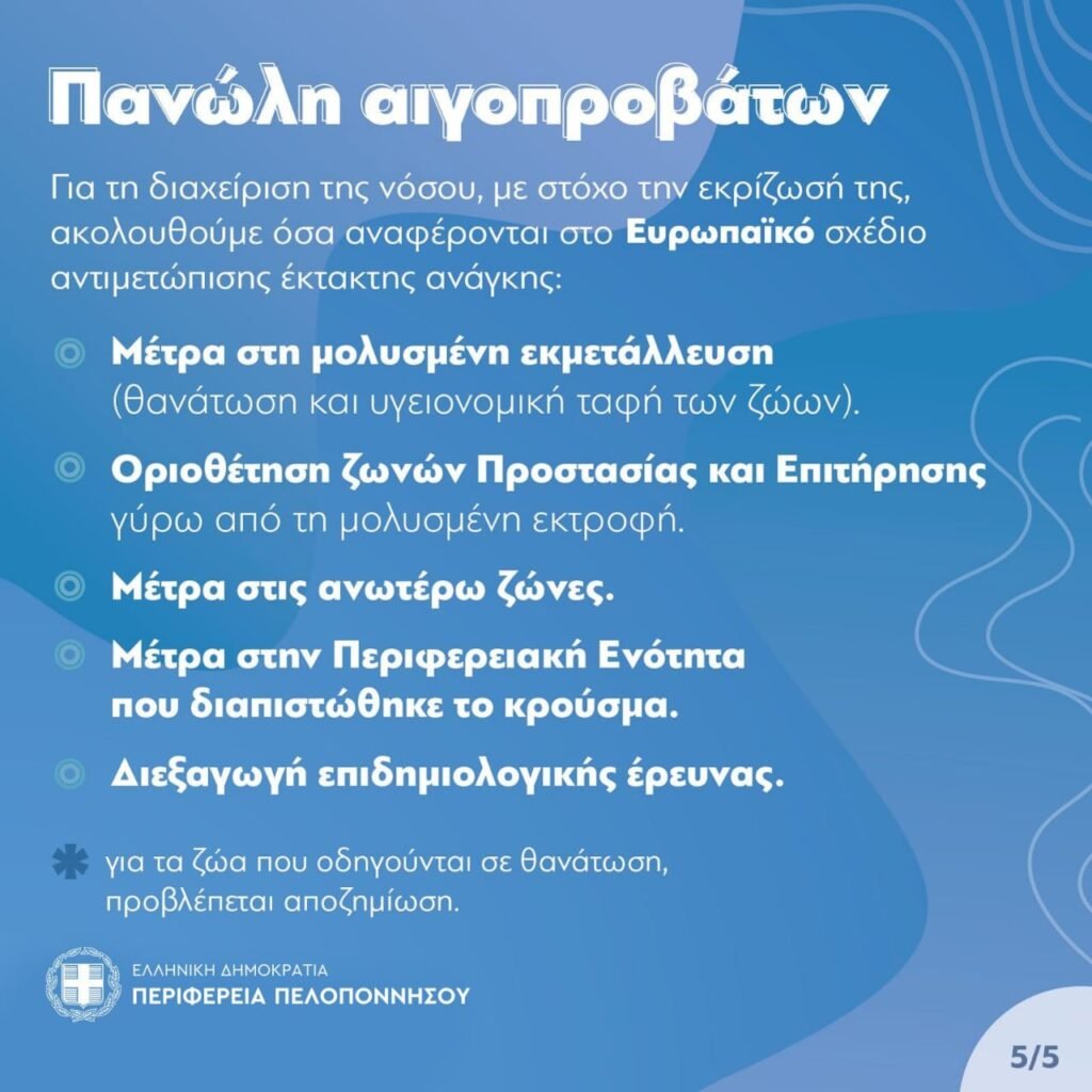 Η Περιφέρεια Πελοποννήσου και η Διεύθυνση Κτηνιατρικής, ενημερώνουν: