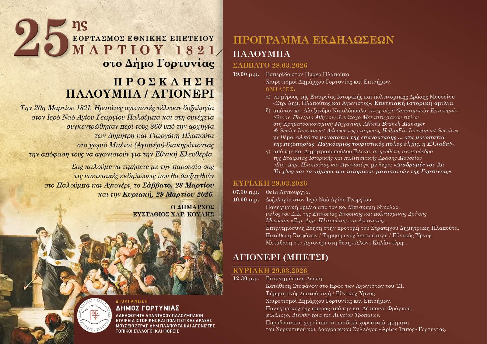 Επετείου της 25ης Μαρτίου 1821, οι οποίες θα πραγματοποιηθούν στου