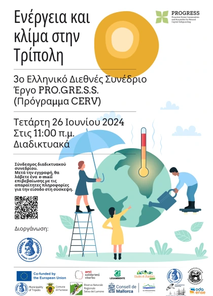Είμαστε στην ευχάριστη θέση να σας προσκαλέσουμε στο 3ο Ελληνικό Διεθνές Συνέδριο με τίτλο «Ενέργεια και Κλίμα στην Τρίπολη», το οποίο διοργανώνει ο Δήμος Τρίπολης, στο πλαίσιο του έργου PRO.GRE.S.S. (πρόγραμμα CERV).