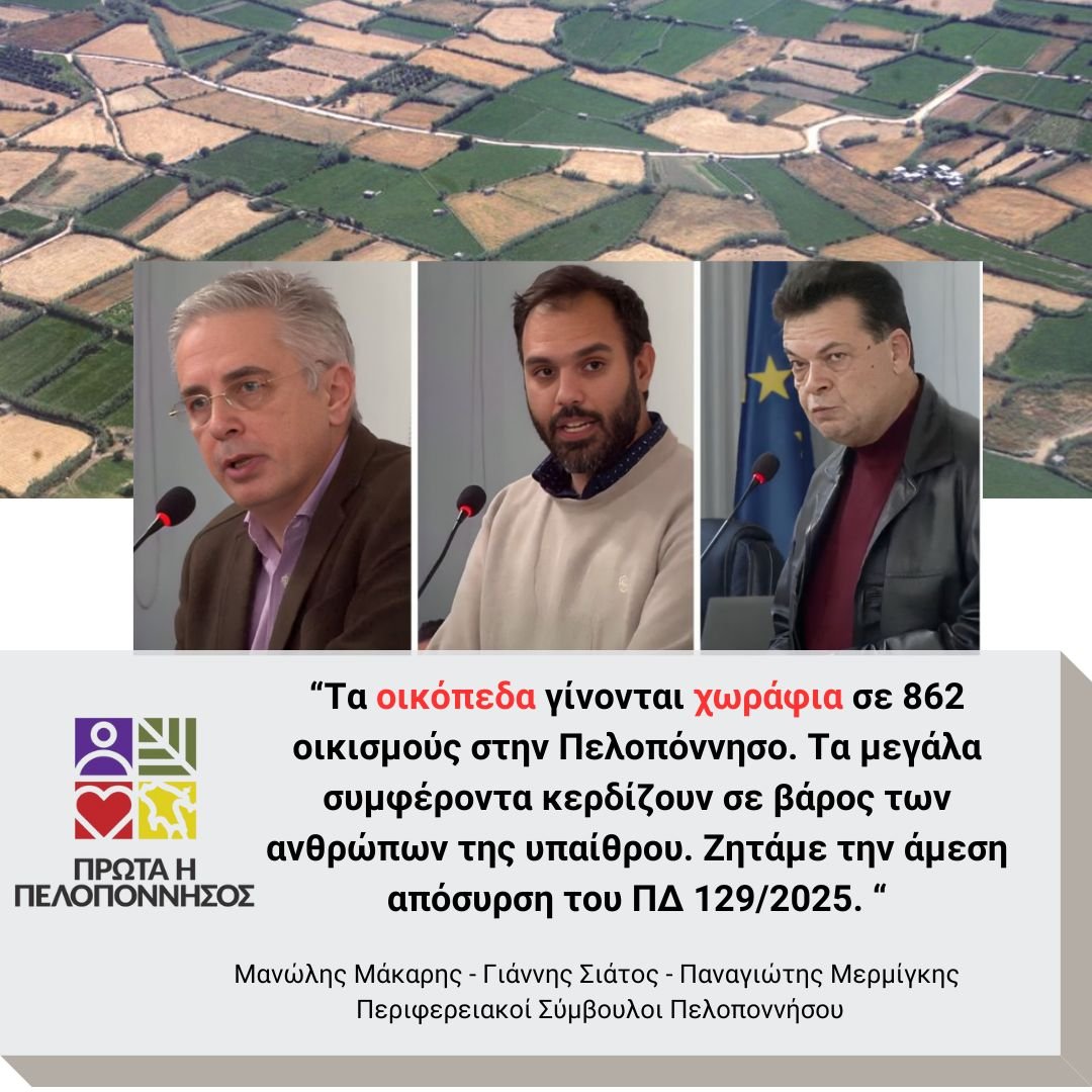 Ζητά την άμεση απόσυρση του ΠΔ 129/2025.