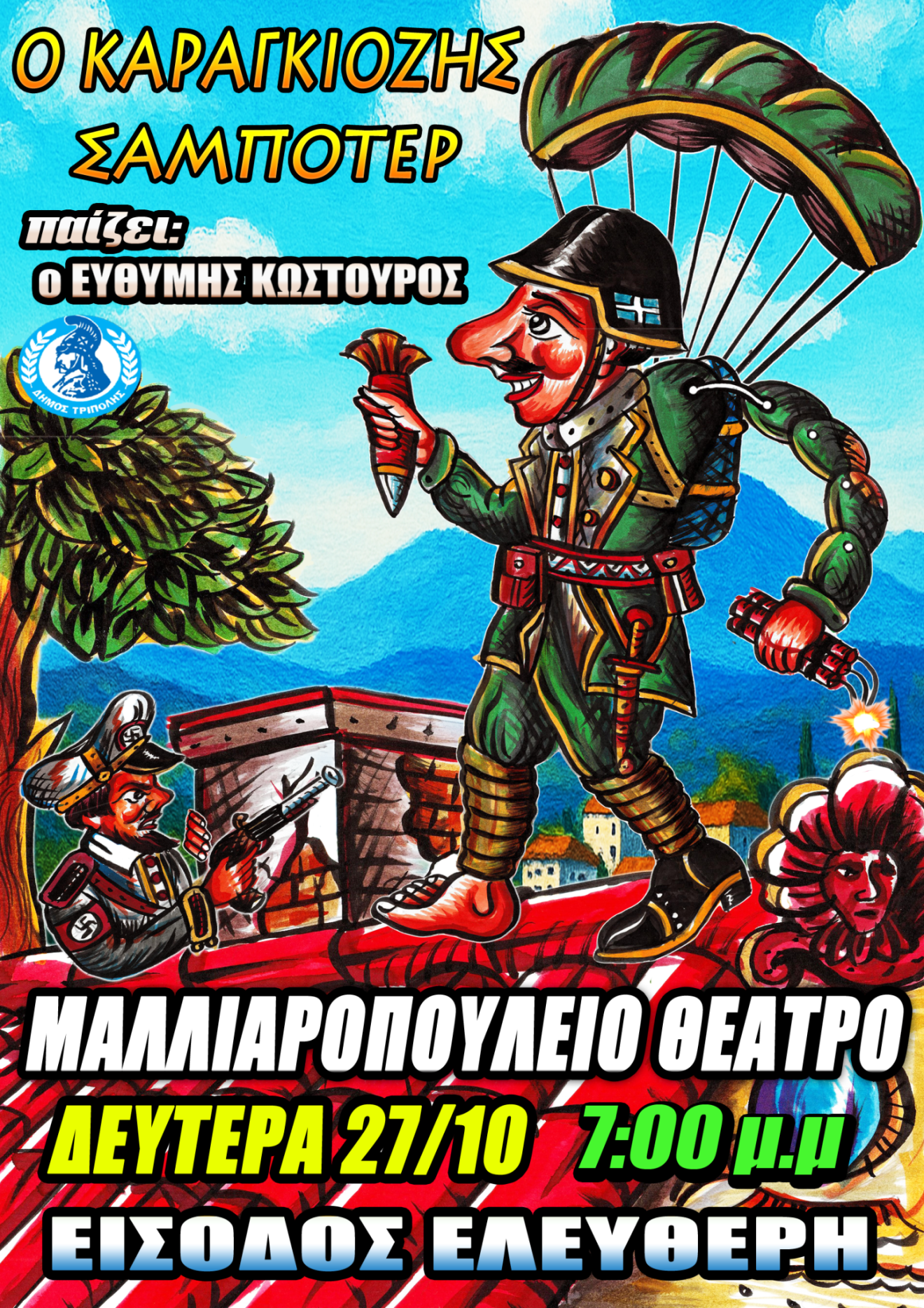 Δεν ειναι άλλος από τον πολυμήχανο Καραγκιόζη που έρχεται να κάνει το μεγάλο “ΜΠΑΜ” στο γερμανικό διοικητήριο.