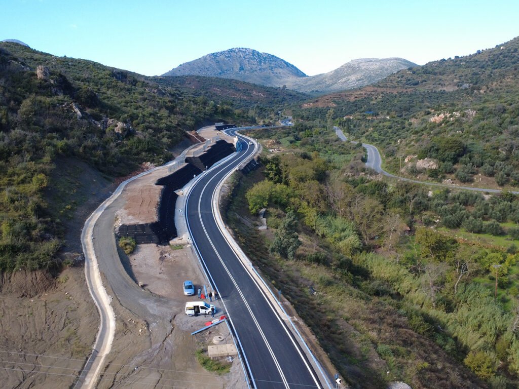 Οι εργασίες περιέλαβαν ανύψωση της ερυθράς της οδού με οπλισμένα επιχώματα, κατασκευή τοίχων αντιστήριξης τύπου L και σύγχρονα αποστραγγιστικά έργα (τάφρους, οχετούς, υπόγεια στραγγιστήρια), ώστε να αποκατασταθεί η ασφάλεια και η σταθερότητα των πρανών και να αποτραπούν μελλοντικά φαινόμενα αστοχιών.
