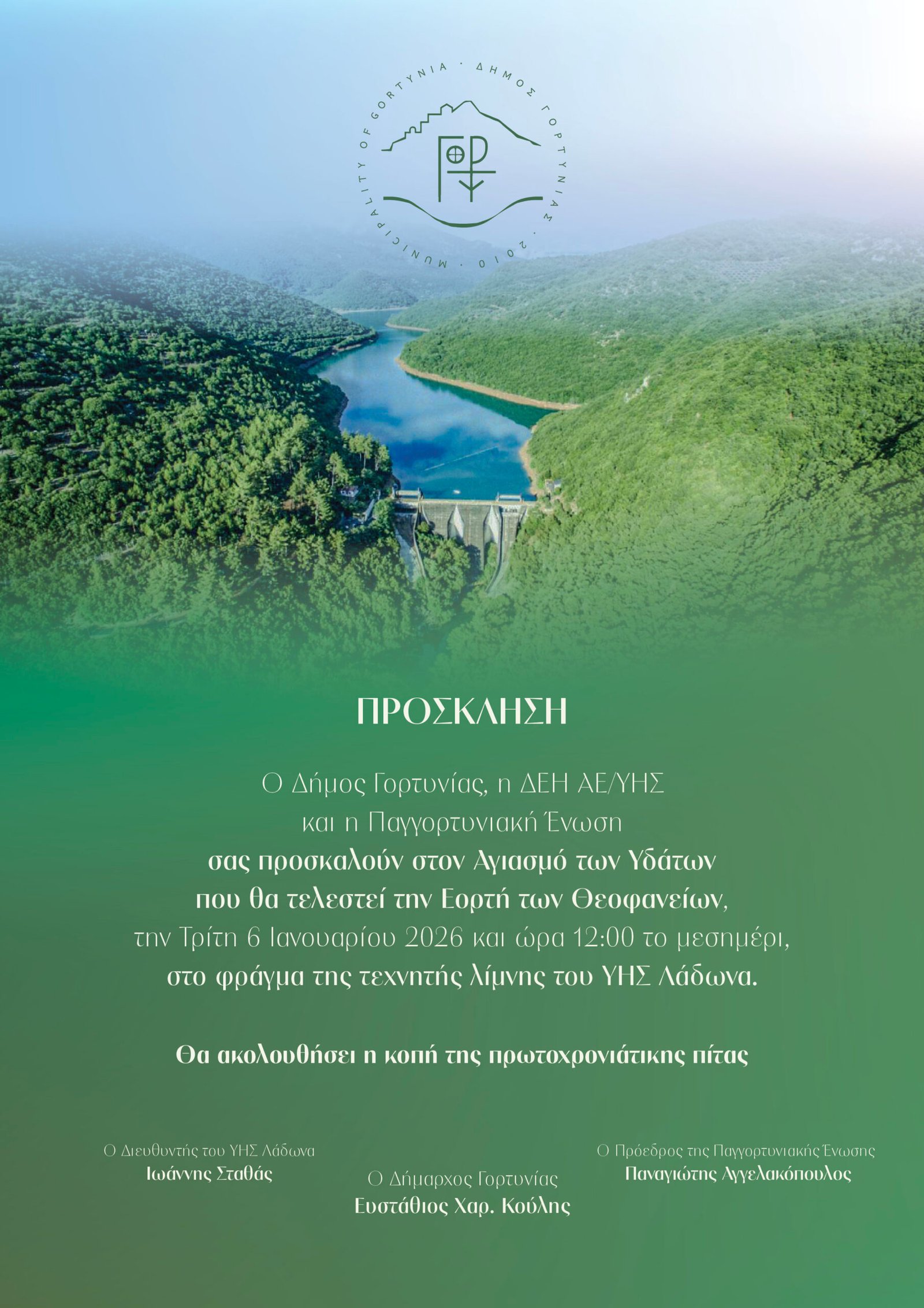 Ο Δήμος Γορτυνίας, η ΔΕΗ ΑΕ/ΥΗΣ και η Παγγορτυνιακή Ένωση σας