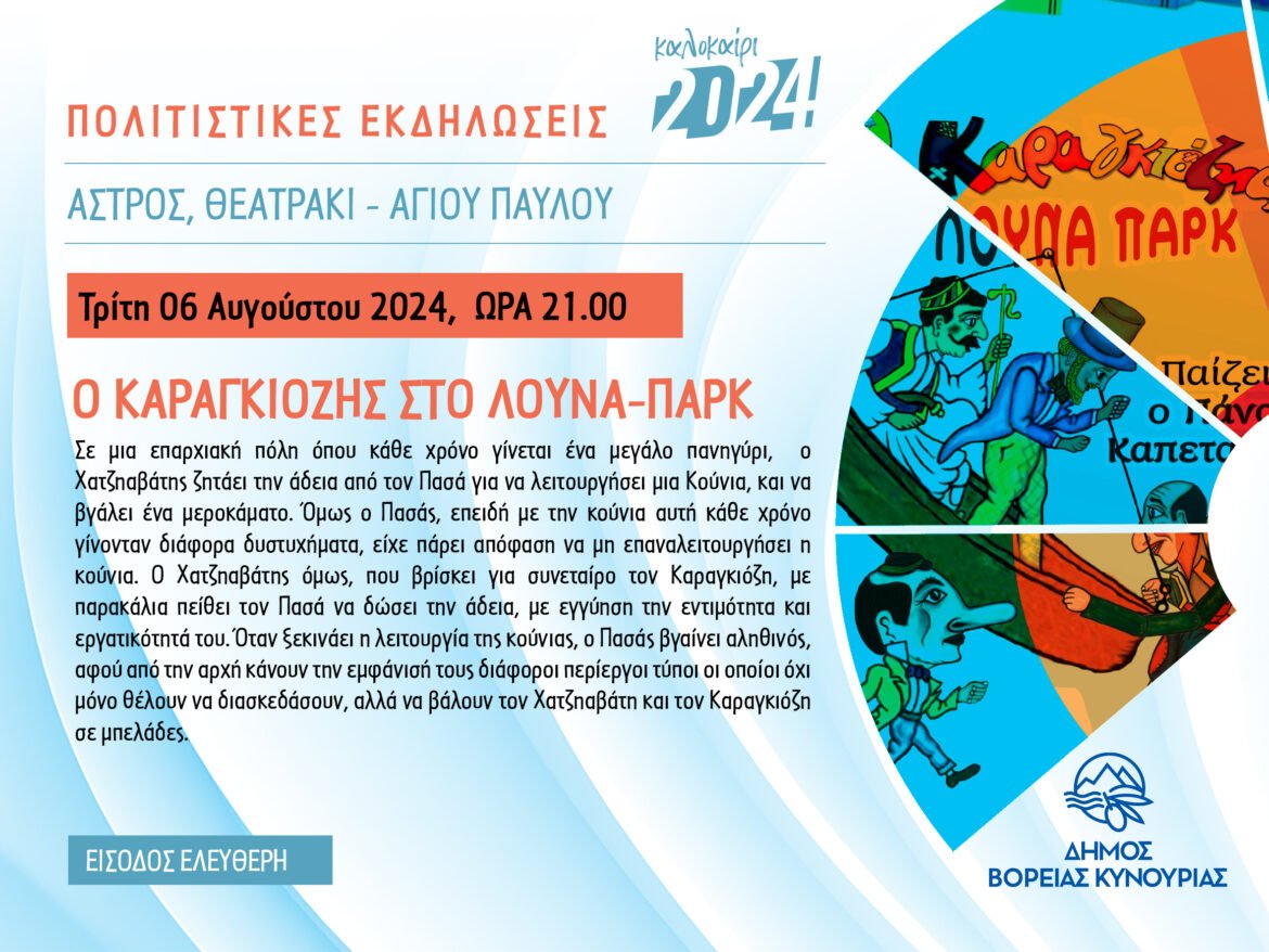 Στο πλαίσιο των πολιτιστικών εκδηλώσεων 2024 του Δήμου Βόρειας Κυνουρίαςθα φιλοξενηθούν παραστάσεις Καραγκιόζη για τους μικρούς μας φίλ […] -