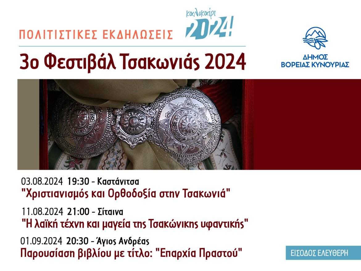 Ο Δήμος Βόρειας Κυνουρίας σε συνεργασία με τις Κοινότητες Καστάνιτσας, Σίταινας καιΑγίου Ανδρέα διοργανώνουν το τρίτο Φεστιβάλ Τσακωνιάς και σας πρ […] -
