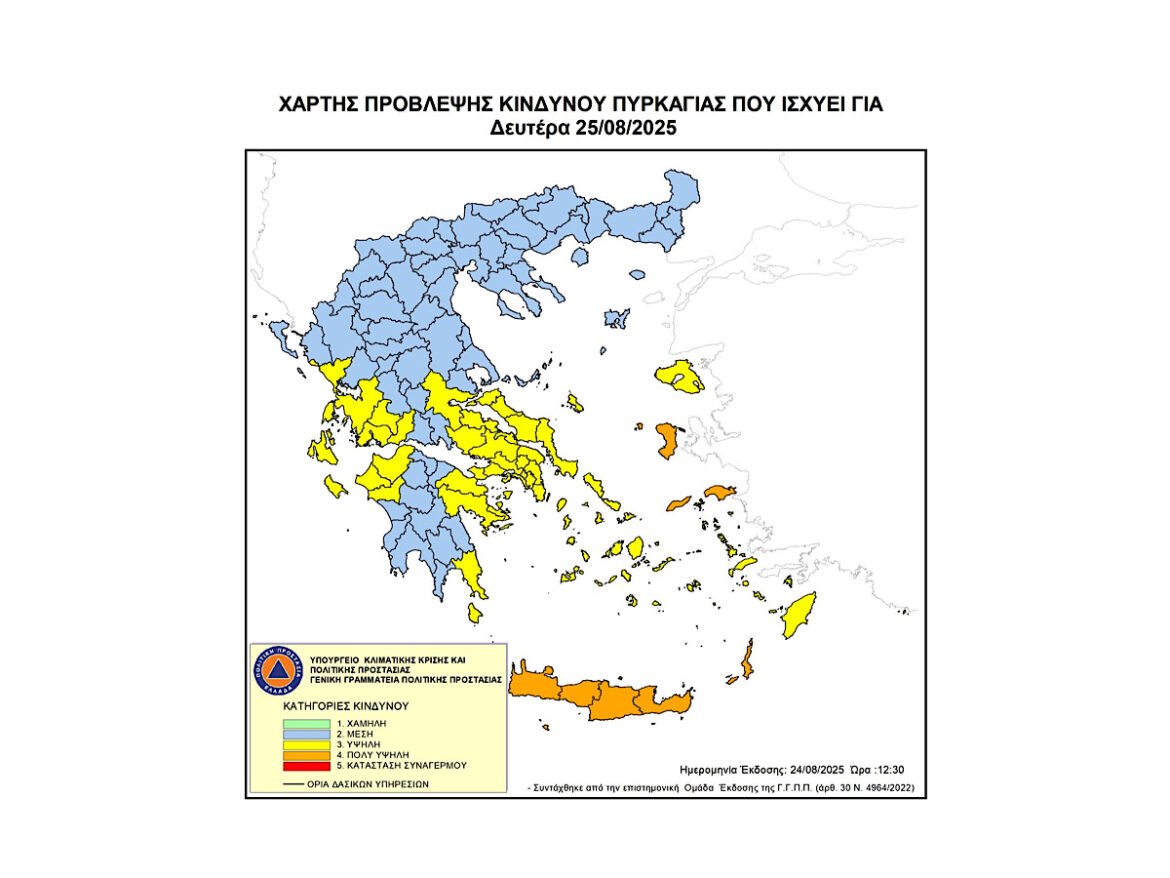 Σύμφωνα με το Χάρτη Πρόβλεψης Κινδύνου Πυρκαγιάς, τον οποίο εκδίδει η Γενική Γραμματεία Πολιτικής Προστασίας του Υπουργείου Κλιματικής Κρίση […] -
